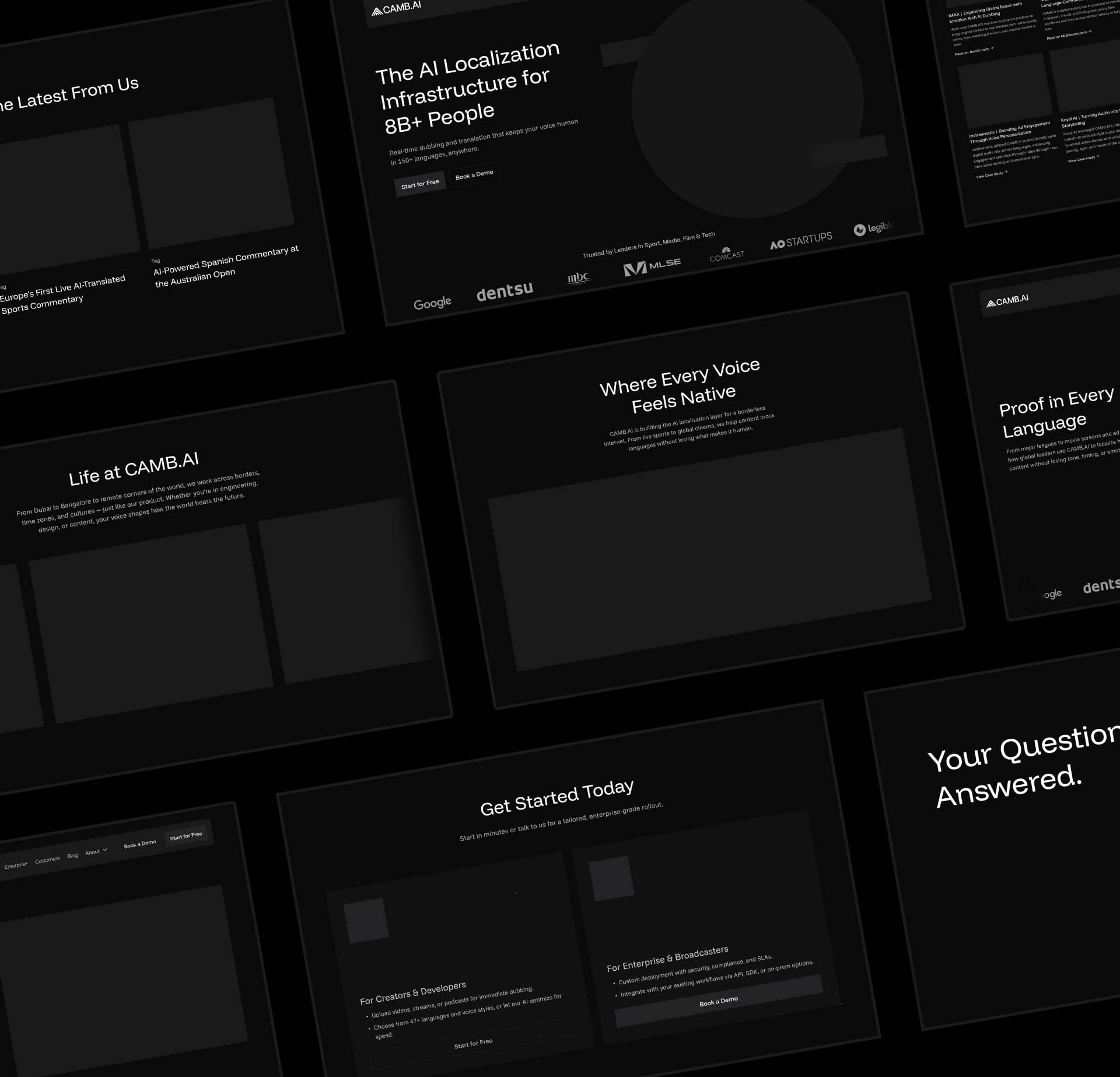 Designed a distinct visual language that conveys CAMB.AI’s technical depth and authority avoiding the generic, template-driven look common in the space.